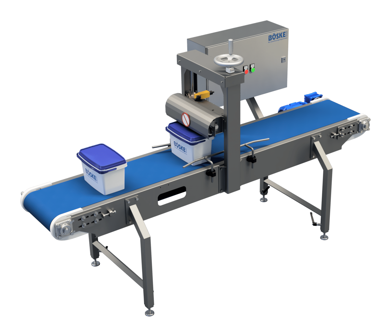 Spande linier Låg dispenser Låg påtrykker med bånd 2000 mm. Spande anlæg med 2 hovedet vejemaskine Spande dispenser